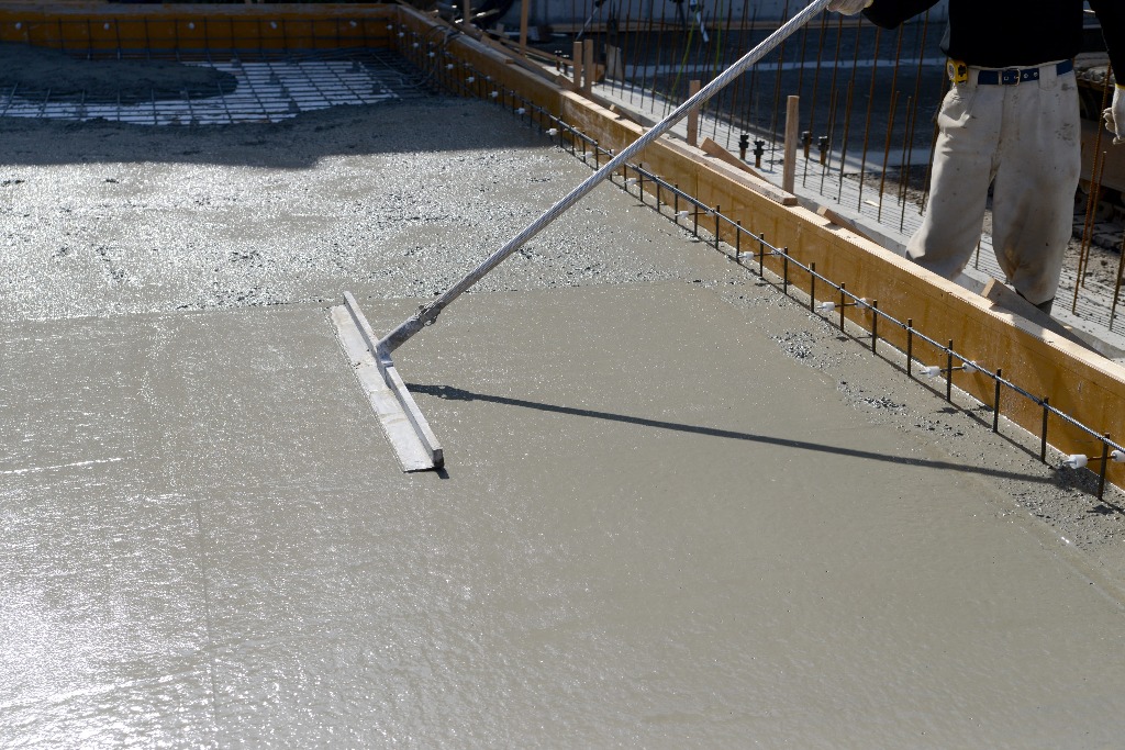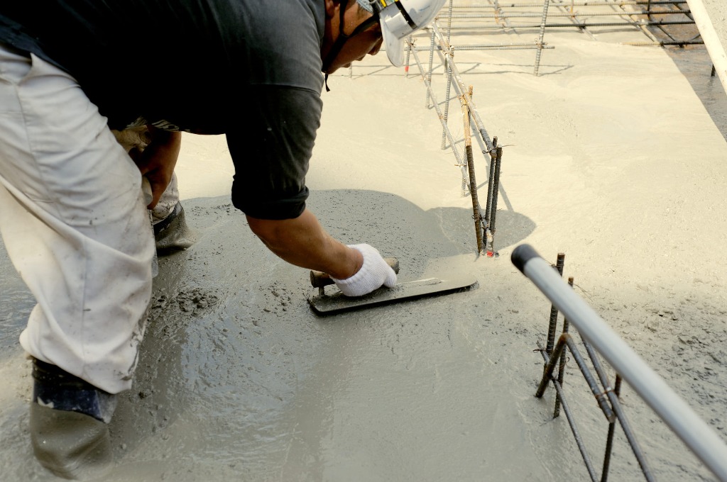 建物のコンクリート躯体の部分にセメント、モルタル等を塗って平面に。